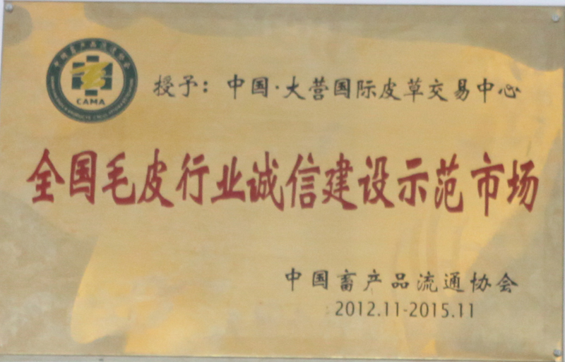 中國·大營國際皮草交易中心榮獲 全國皮毛行業誠信建設示范市場