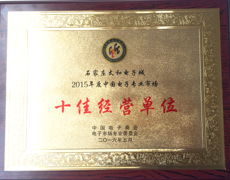 太和電子城榮獲 2015年度中國電子專業市場十佳經營單位